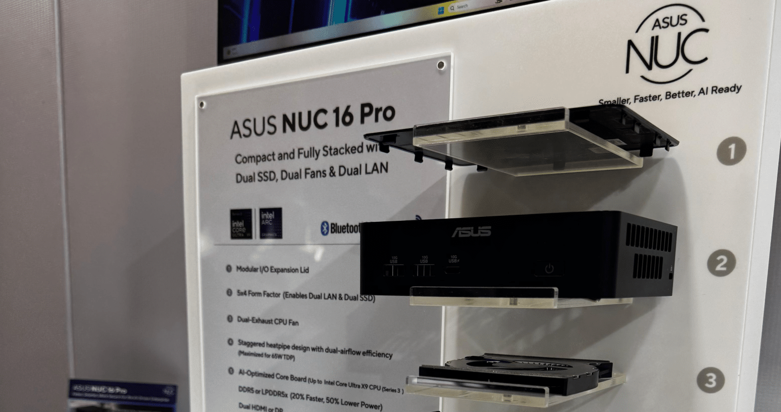 Por un lado, la ASUS NUC 16 Pro, impulsada por Intel Core Ultra Series 3, ofrece hasta 180 TOPS de IA a nivel de plataforma; mientras que la ASUS ExpertCenter PN55 es una PC Copilot+ que incorpora el procesador AMD Ryzen AI 400 Series y una NPU que entrega hasta 55 TOPS.