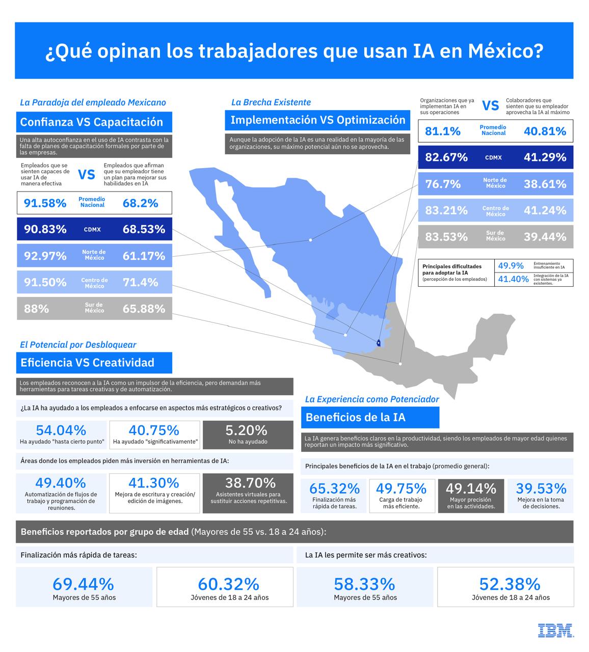 “Actualmente, la IA en México está redefiniendo los límites de la estrategia empresarial. Sin embargo para que esto permee a todos niveles del entorno laboral, de modo seguro y sostenible se debe centrar en el talento humano”, declaró Mauricio Torres Echenagucia, presidente y Líder de Tecnología en IBM México.