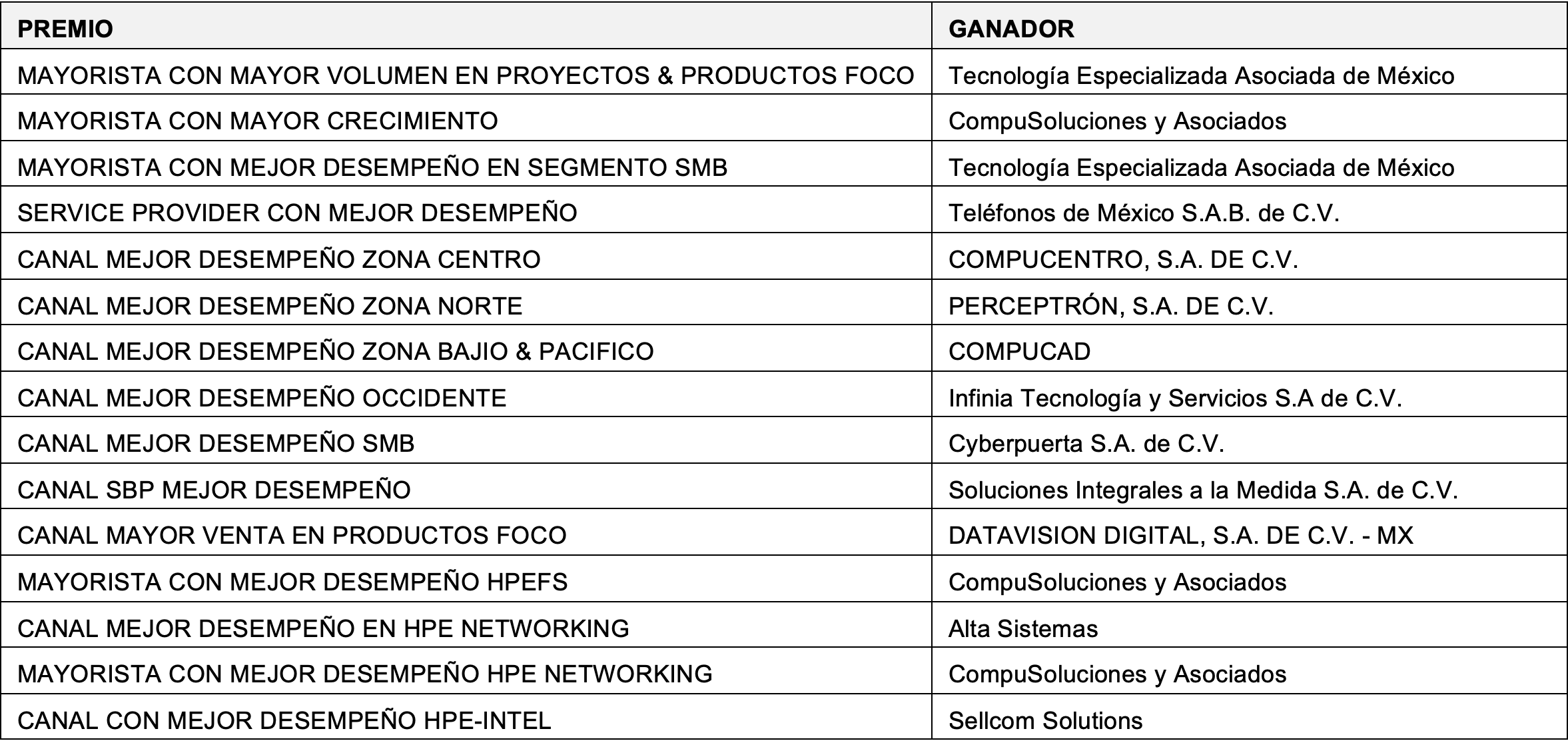 Hewlett Packard Enterprise (HPE) realizó los premios Quetzal 2026 en su sexta edición.